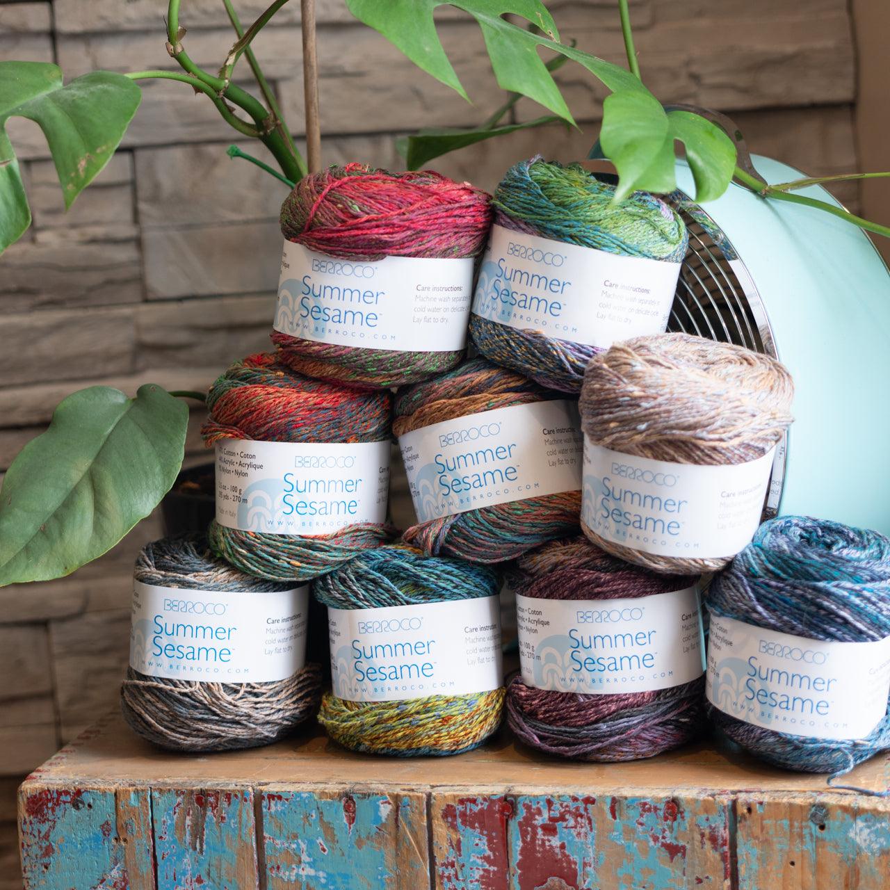 Bright, happy shades of colors ebb and flow to make this light worsted weight yarn a perfect summer choice. This cotton blend yarn is light to the touch, easy to work with, and self striping.
