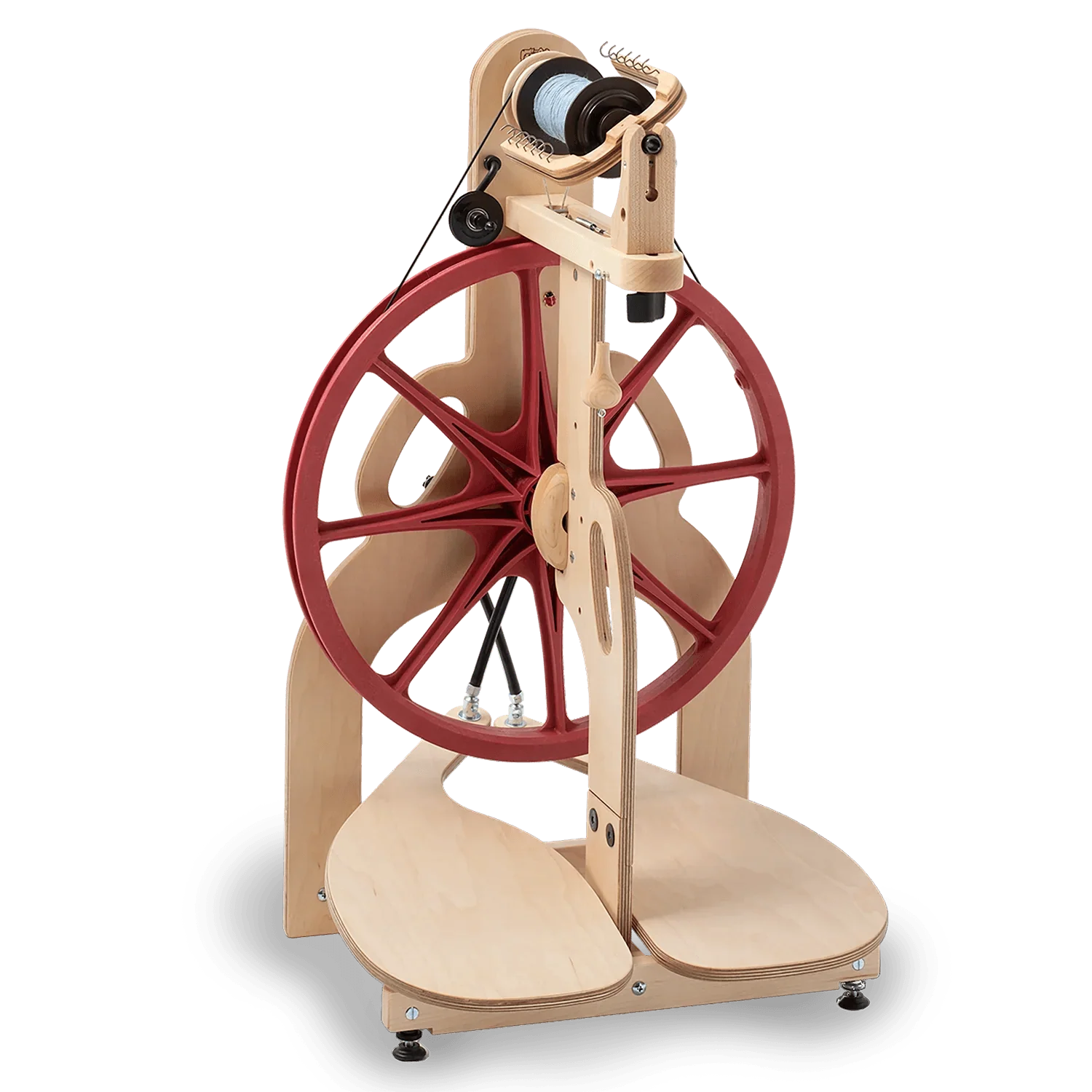 The Ladybug has the characteristic solid Schacht construction and its unique design is both functional and charming. Designed-in carrying handles in the legs and light weight make the Ladybug convenient to pick up and transport. An optional attached tensioned lazy kate integrates into the front leg and makes it easy to take along, too! The Ladybug can be used in Scotch tension and double drive modes. Each Ladybug wheel is unique—somewhere on your wheel is your very own ladybug pal.